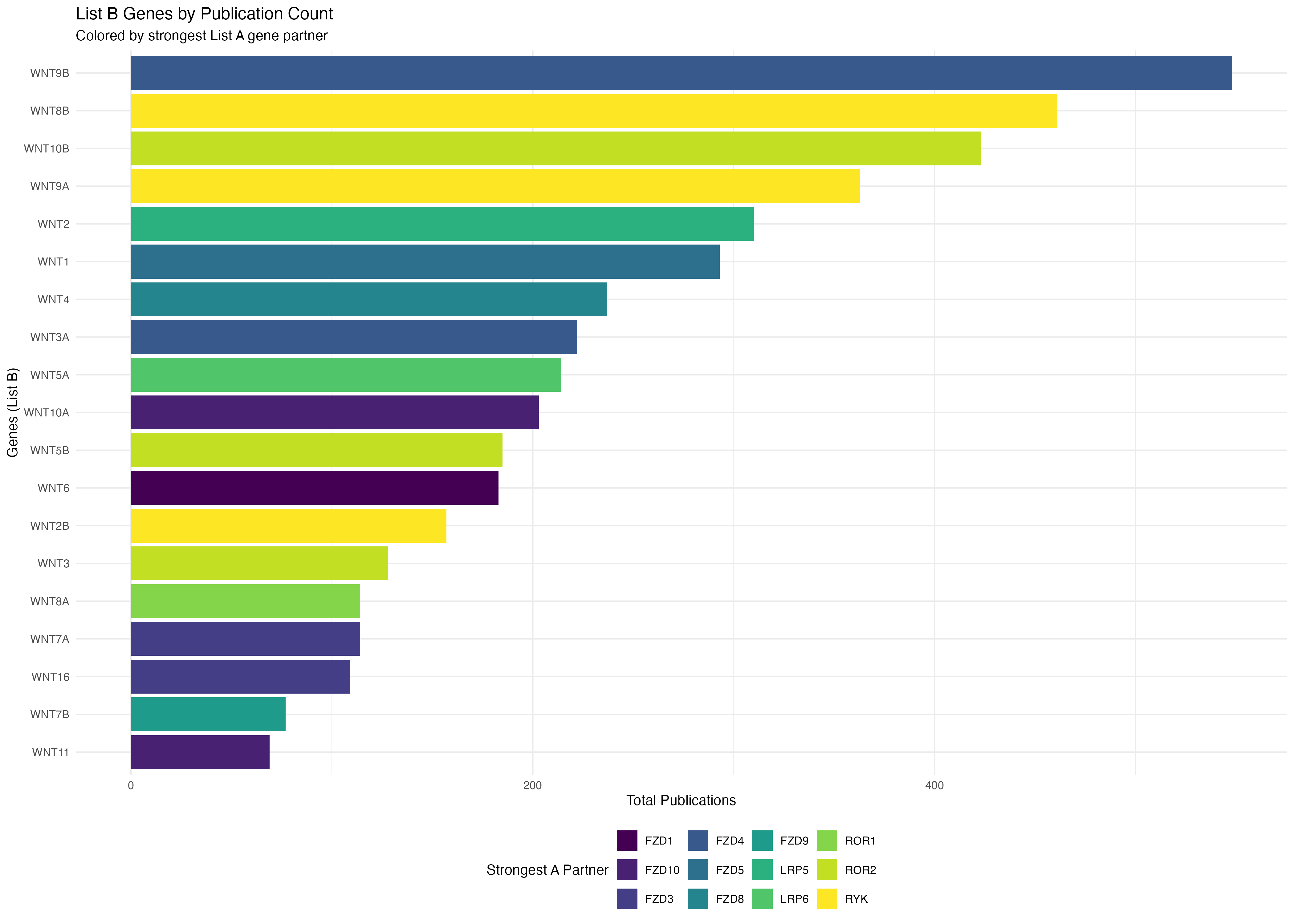 p1 <- ggplot(a_genes_data, aes(x = reorder(gene, total_pubs), y = total_pubs, fill = max_b_gene)) +