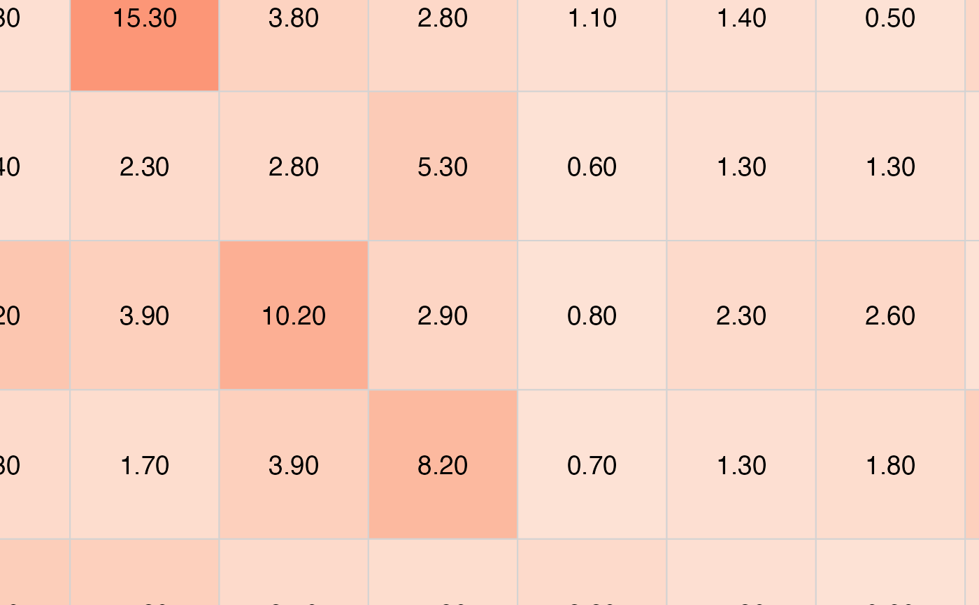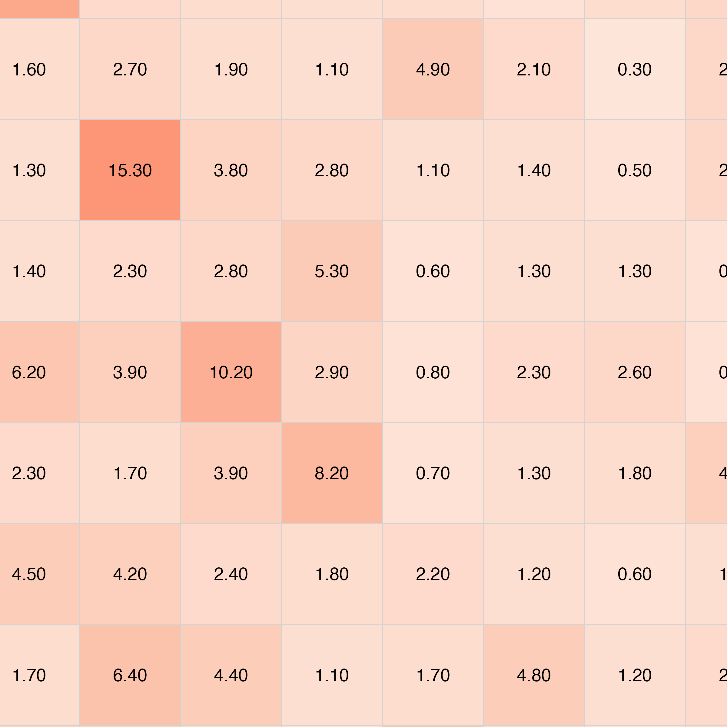 | FZD1 | 41 | 14 | 6 | 14 | 17 | 4 | 5 | 11 | 44 | 6 | 7 | 2 | 8 | 32 | 19 | 38 | 1 | 2 | 12 |
