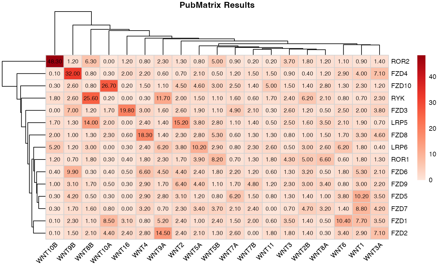 caption = "Co-occurrence Matrix: WNT Genes (Publication Counts)",